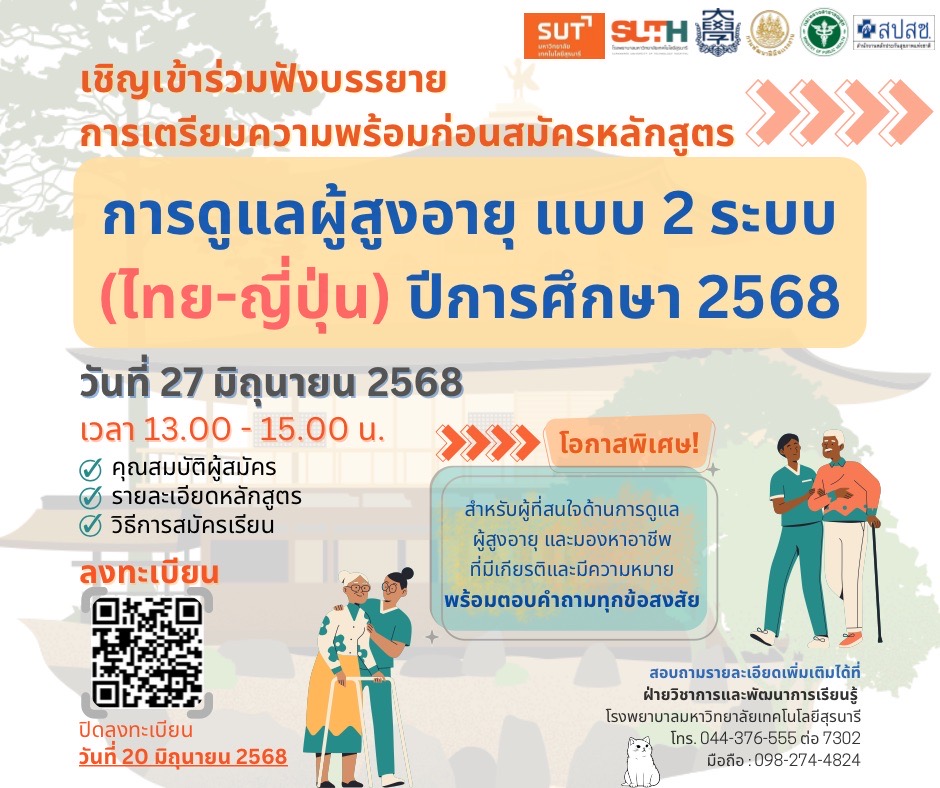 ขอเชิญเข้าร่วมฟังบรรยายเตรียมความพร้อมก่อนสมัครเรียนหลักสูตรดูแลผู้สูงอายุแบบ 2 ระบบ (ไทย-ญี่ปุ่น)