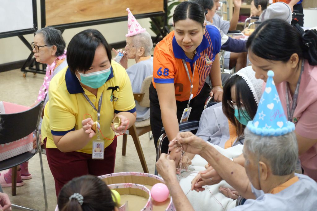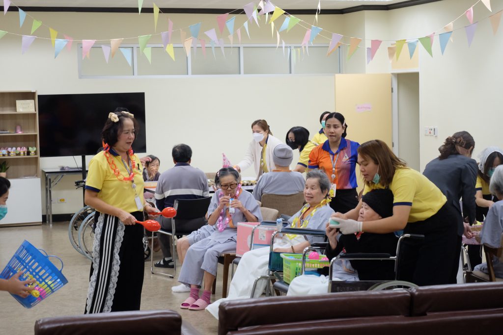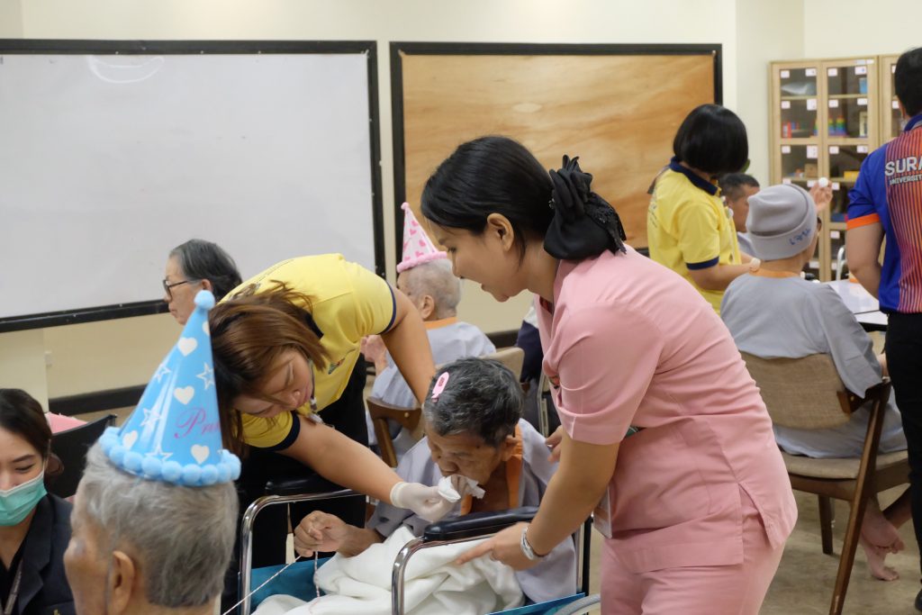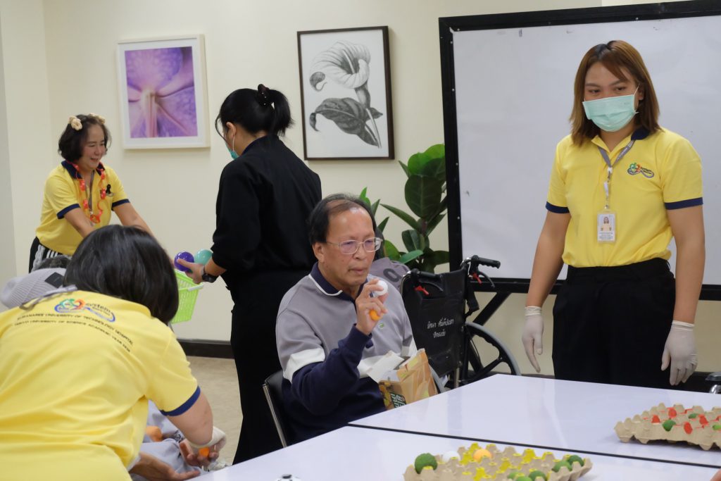 เมื่อวันที่ 28 พฤศจิกายน 2568 ผู้เข้าศึกษาหลักสูตรการฝึกอบรมดูแลผู้สูงอายุ แบบ 2 ระบบ (ไทย-ญี่ปุ่น) ได้ร่วมจัดกิจกรรมนันทนาการให้กับผู้สูงอายุและผู้ป่วย ณ ศูนย์บริบาลผู้สูงอายุและผู้ป่วย ชั้น 12 อาคารศูนย์ความเป็นเลิศทางการแพทย์ โรงพยาบาลมหาวิทยาลัยเทคโนโลยีสุรนารี โดยมีวัตถุประสงค์เพื่อส่งเสริมและชะลอความเสื่อมของผู้สูงอายุให้สามารถทำกิจวัตรประจำวันได้ด้วยตนเองตามศักยภาพสูงสุดที่มี ช่วยส่งเสริมกระบวนการคิดและความจำ ทำให้เกิดความรู้สึกผ่อนคลาย สนุกสนานจากการทำกิจกรรม และกระตุ้นให้ผู้สูงอายุมีปฏิสัมพันธ์ทางสังคมให้มากขึ้น ลดการ แยกตัวและส่งเสริมให้เกิดการเห็นคุณค่าในตนเอง