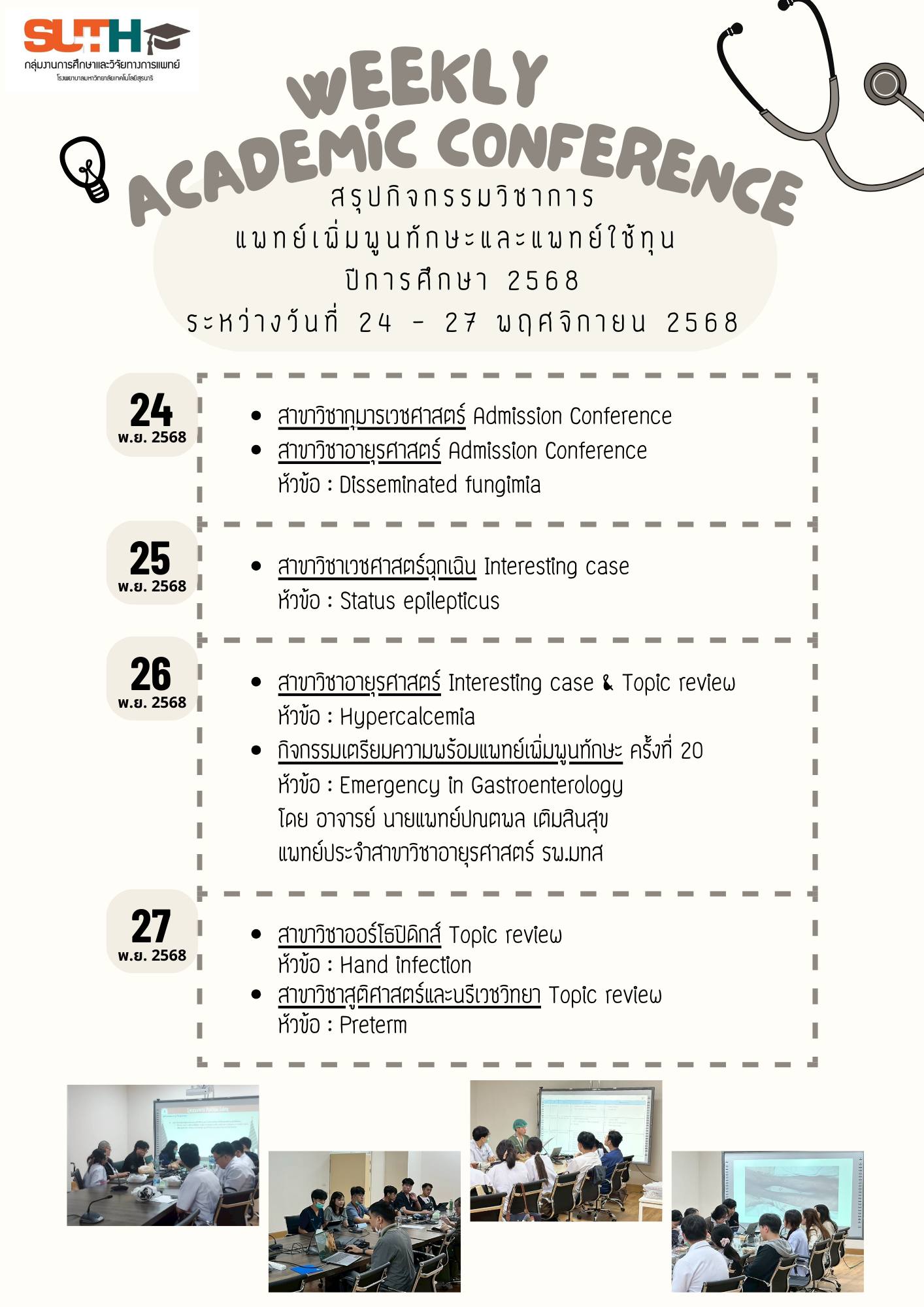 กิจกรรมวิชาการแพทย์เพิ่มพูนทักษะและแพทย์ใช้ทุน ประจำวันที่ 24 – 27 พฤศจิกายน 2568