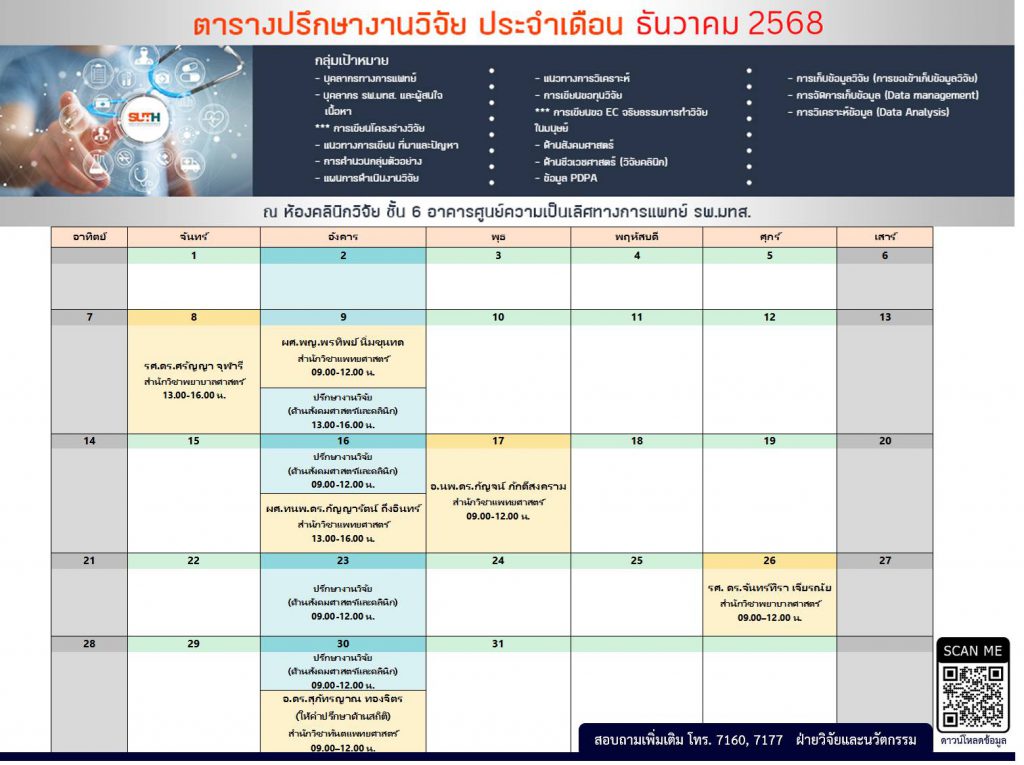 ขอประชาสัมพันธ์ ตารางที่ปรึกษางานวิจัย16 ธันวาคม 2025