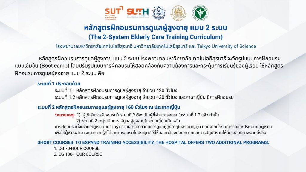 - เพื่อให้ผู้เข้าอบรมมีทักษะในการดูแลผู้สูงอายุ